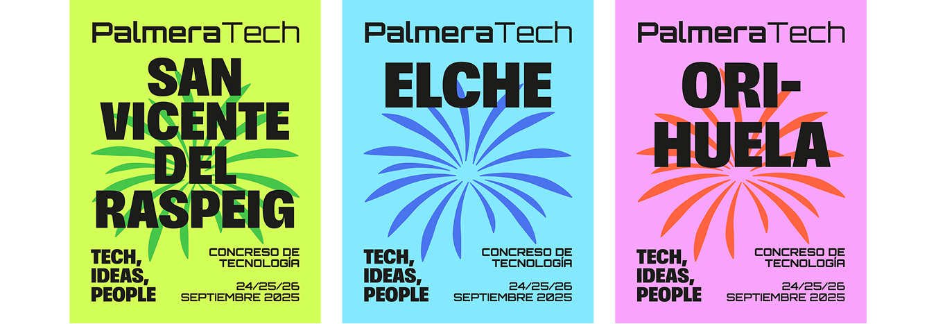 Rediseño de la identidad visual de PalmeraTech, el congreso de tecnología más importante de la provincia de Alicante. Partiendo de su imagen original, evolucionamos la marca para acompañar el crecimiento del evento: más sedes, más jornadas y una programación ampliada.